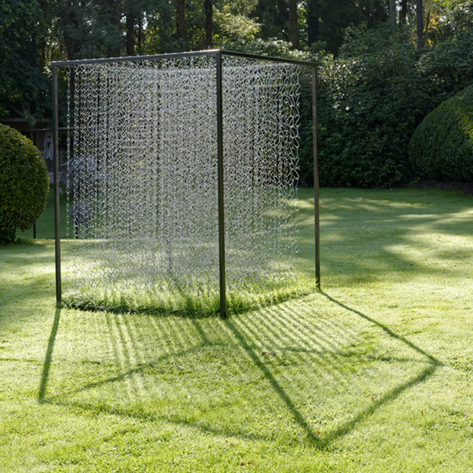 Sculptures 06 < SCULPTURES > 006 2017 | Inox butcher's hooh, inox strings, steel cage | 240 x 200 x 2O0 cm Copyright © 2017 Dino Chatila. All rights reserved.